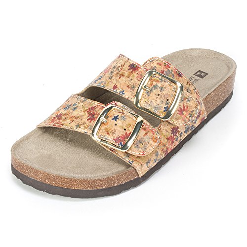 -. Feature : Adjustable buckle 2 band footbed / P.R.Inted floral cork / Flexible treaded outsole