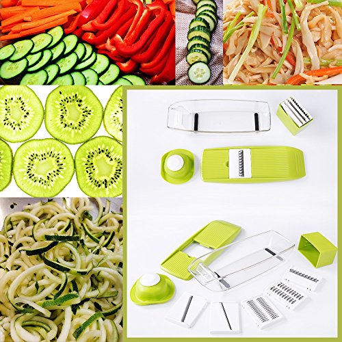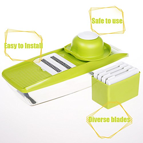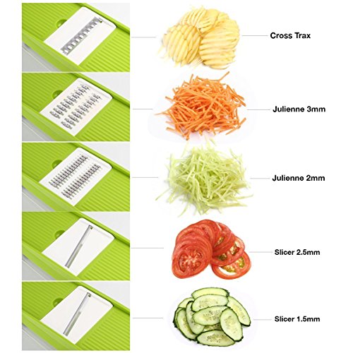 FEATURES: - 5 types of powerful stainless steel blades: (2.5mm 3.5mm Julienne Blades, 2.5mm 3.5mm Flat Blades, and Grate Blade)