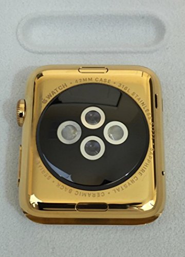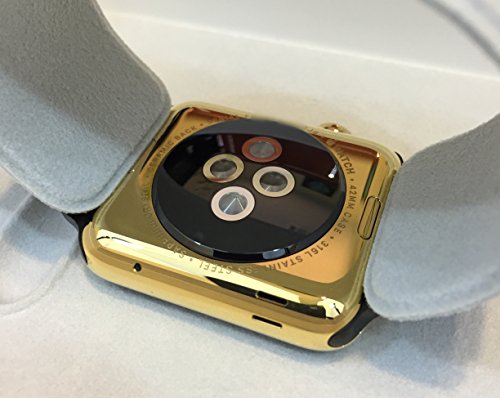 24 karat yellow gold plated Apple Watch with black sports band. Plating performed by professional with decades in the gold plating industry. Plating performed to a minimum thickness of 3 microns (140 micro inches).Feature