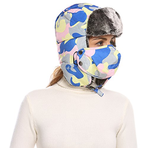 Extra thick fur,adjustable chin strap with removable windproof mask,keep your Face and Ears warm from cold Waterproof out shell prevent your head from cold snow or strong wind in outside activities Very useful for trapping skiing and snowboarding or outdoor activities in winter