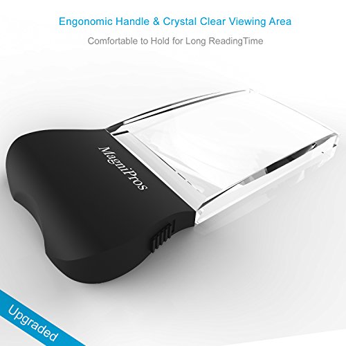 MagniPros LED Light 2X Large Rectangular Handheld Magnifier Reading Magnifying Glass - 2.3" X 4" Rimless Distortion-Free Lens for Seniors, Low Vision,...