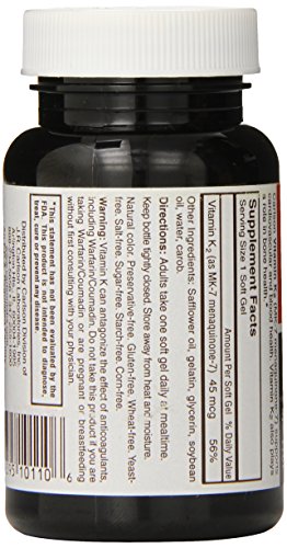 Carlson vitamin K2 (MK-7 menaquinone-7) supports cardiovascular and blood health. Vitamin K2 also plays a role in bone health.