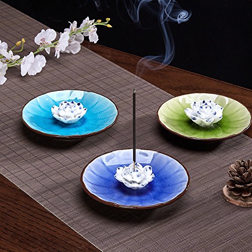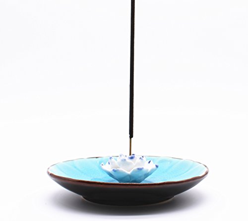 Uoon Handmade Ceramic Lotus Flower Incense Burner Holder Bowl Ash Catcher Tray Plate (Sky-Blue)