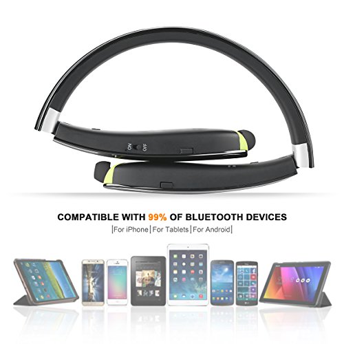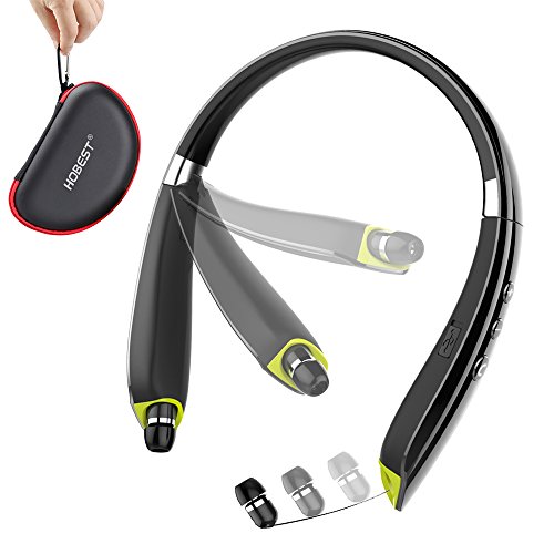 Hobest Foldable Bluetooth Headphones, Upgraded Wireless Bluetooth Headset Earphones with Mic, Noise Cancelling Neckband Sweatproof Sport Headphones with Retractable Earbuds—SX990