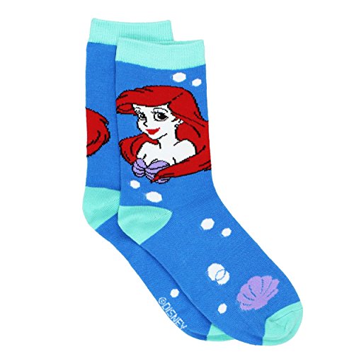 Go on an adventure with Princess Ariel in these 2 pack novelty teen and adult crew socks! Two pairs in each set provide variety and excitement, with each pair featuring different colors and graphics of your favorite Disney The Little Mermaid character: Princess Ariel! With vibrant colors, and tons of variety, these teen and women's Disney socks are sure to be a hit! It's the perfect choice for any fan of The Little Mermaid or Disney Princesses!Feature