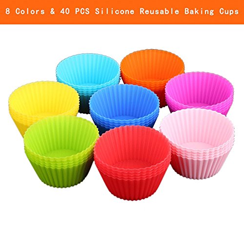 Fantastic Zone 40 Pack Silicone Cupcake Liners Round Cases Reusable Baking Muffin Cups Molds Sets