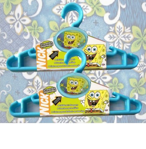 -. Binding : Kitchen -. Color : blue -. EAN : 0080213955526 -. Feature : Set of 8 clothes hangers featuring SpongeBob SquarePants! / Color is blue. / Hangers measure 12" wide to securely hold clothes that are too small to fit on adult hangers. / Loops on top to hold straps. / Set of 8 plastic hangers, in 2 packages. -. IsAutographed : 0 -. Label : Nickelodeon -. Manufacturer : Nickelodeon -. MPN : B002QDFOL4 -. PackageQuantity : 8 -. PartNumber : B002QDFOL4 -. ProductGroup : Home -. ProductTypeName : HOME -. Publisher : Nickelodeon -. SKU : 2pk-sponge4hangers95552-fbu -. Studio : Nickelodeon -. Title : SpongeBob SquarePants Clothes Hangers (set of 8) -. UPC : 080213955526