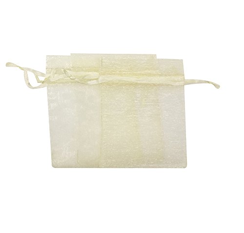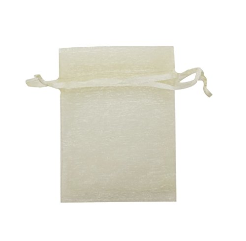 SUNGULF 100Pcs Sheer Organza Drawstring Pouches Wedding Gift Bags 3x4 Inches (Ivory)