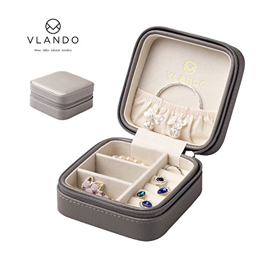 Vlando Macaron Small Jewelry Box, Travel Storage Case for Rings and Earrings - Grey