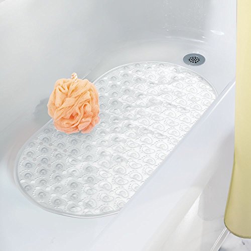 mDesign Footprints Non-Slip Bath Mat for Bathroom Shower or Tub – Clear