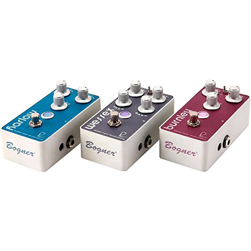 Studio : Bogner Publisher : Bogner Product Description Get Bogner-designed tones in your pedalboard with the Bogner Burnley distortion pedal! Using a Rupert Neve transformer, the Burnley offers killer touch sensitivity, lush tone and high-quality sound. You'll be able to get anything from moderate distortion to British high-gain tones to push your amp into tonal bliss. The Tone control lets you tweak your sound to perfection. And the Fat/Tight switch lets you change the vibe of the pedal from a tighter metal feel to a looser rock feel. Upgrade the sound of your rig with the boutique Bogner Burnley distortion pedal! 0