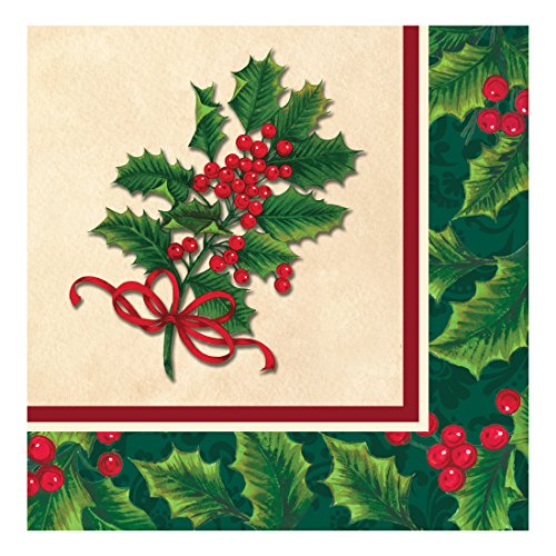 Creative Converting 317166 16 Count Paper Lunch Napkins, Boughs of Holly