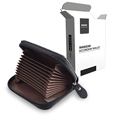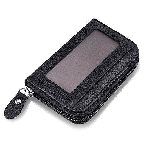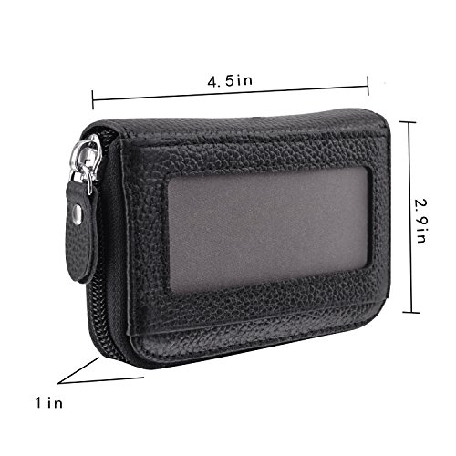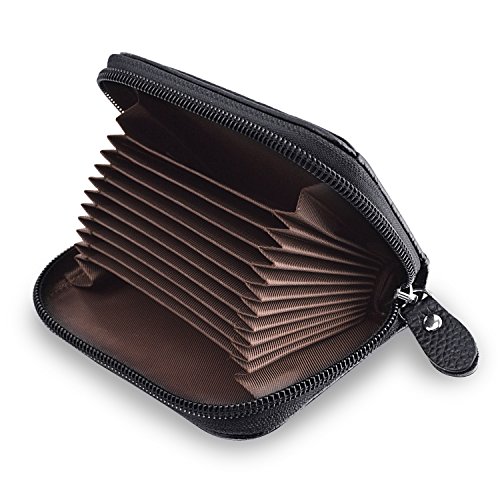 Product Features -- 100% high quality genuine leather -- RFID Blocking - Anti-theft -- Soft zipper - Smooth zipper compact design -- Accordion style - multi card slots -- Light weight- Only 0.14lbs -- Slim - Wallet Size: 4.3 x 2.9 x 1 inches -- Compact design - High capacity