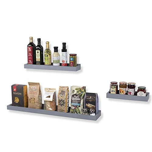 WALLNITURE Wooden Kids’ Room Décor Wall Mounted Floating Shelves in Varying Sizes Gray Set of 3