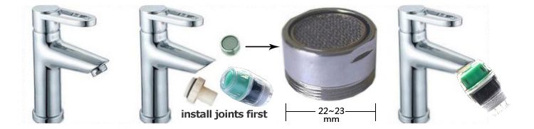 Lifestyle & Fashion!High Quality! A must item for home&kitchen&office uses Compact,environmental&easy to install Double filtration, more cleaner. Makes water pure and tasty&bland,avoiding splashing Delicate appearance, easy to install and convenient to clean. Enjoy clean water with the help of this health tap water purifier. Feature: * 100% Brand New * Filter and purify your water, give your family only the best and healthy water. * This faucet water filter can generate great purified water instantly and help you make the best tasting coffee and tea. * Switches between filtrated water and tap water flexibly using Nano-KDF technology to inhibit the growth of bacteria. * If the water quality in your area is really bad, just clean the filter more often. Very environmental friendly. Wallet friendly too. * This water faucet uses coconut carbon to filter water, Coconut Carbon is a natural gemstone. * It is a crystal silicate mineral compounded with elements such as aluminium, iron, magnesium, sodium, lithium, or potassium. * Coconut Carbon is a very good material for filters. * Coconut Carbon help to provide you with the most healing and beneficial water available and will help to enhance and energize * both your physical and spiritual states. * It Can Remove: rusts, parasites, contaminants, worms, residual chlorine, algae,heavy metal ions,dirt,organic pollutants, unpleasant tastes, cryptosporidium and giardia. * Size:Cartridge Height-6cm(2.36"),Diameter-4cm(1.57") * Material: polypropylene,Activated carbon, coconut shell, PP filter * Weight: 55g. How to use: 1. For 16-19mm faucet head,please remove the fre joints first,force into the flexible pouches directly. (see usage a,b,c) 2. For 22-23mm female faucet head,please install joints first and force in the flexible pouches! (see usage d) ![]() 3. For 21-22mm male faucet head,please use own screw mouth to install. (see usage e) ![]() ![]() Q&A: * How long can be used? Based on the quality of water, 1-2 month in normal for every day use!