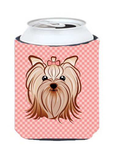 Pink Checkered Yorkie / Yorkshire Terrier Can or Bottle Hugger BB1138CC