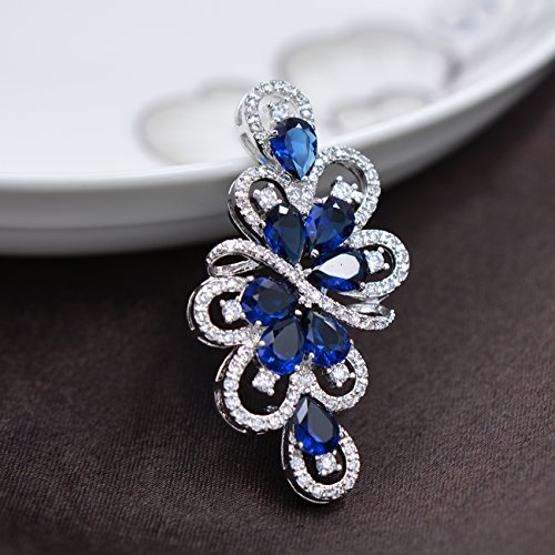 -. Feature : Search 'Hanie SZ006b' for the same Design White Brooch. / Brooch Metall: Silver Tone + White Round and Blue Pear Cubic Zircon, CZ is well known as a substitute for diamond. / Brooch size: 5.35cm L/ 3cm W(2.10in L/1.18in W) / It is a good choice for engagement or wedding jewellry, which is endowed with special significance. / All items are well packed in an exquisite jewelry gift box. A good choice as a gift for yourself, mother, girlfriend and wife.