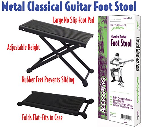 Studio : Tour Grade Publisher : Tour Grade Binding : Electronics Product Description Tour Grade's Guitar Foot Stool is the must have accessory for any Classical or Flamenco guitar player. The height and angle of the footrest can be adjusted to accommodate your natural playing position when seated, and the size of the stool when folded will easily fit in any bag or case. 0
