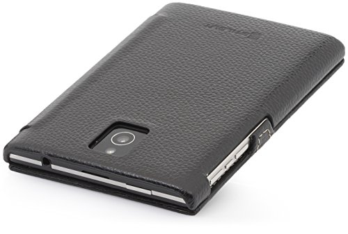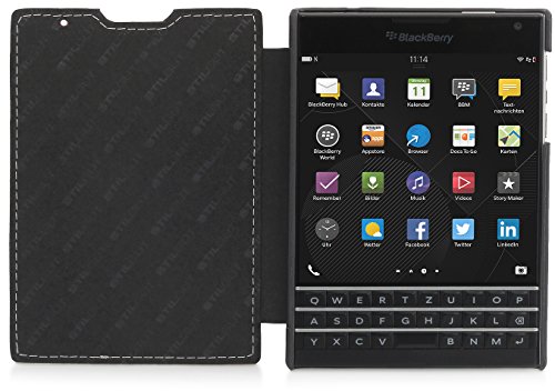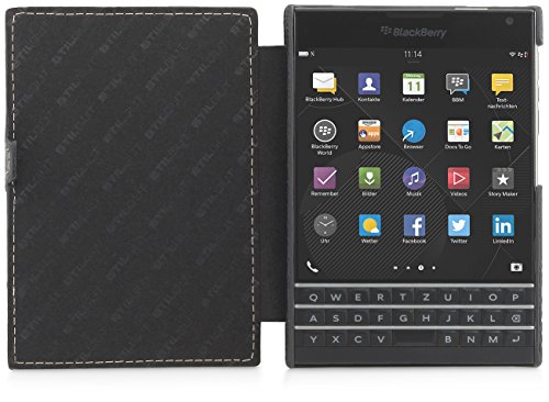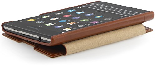 - Designed specifically for BlackBerry Passport, with precision fit - High-quality case made of genuine leather with a soft microfiber interior - Highlights: Very elegant, ultra slim and lightweight case - Automatically wakes and puts Blackberry Passport to sleep - The cover can be completely hinged at the back. Headphones can be used when the cover is closed. Taking pictures is possible as precise cutouts ensure space for the BlackBerry's lens and flash.