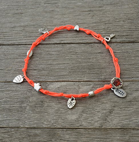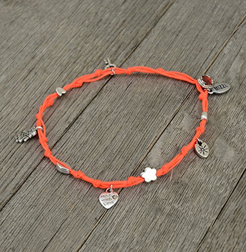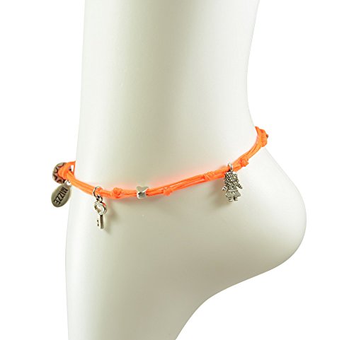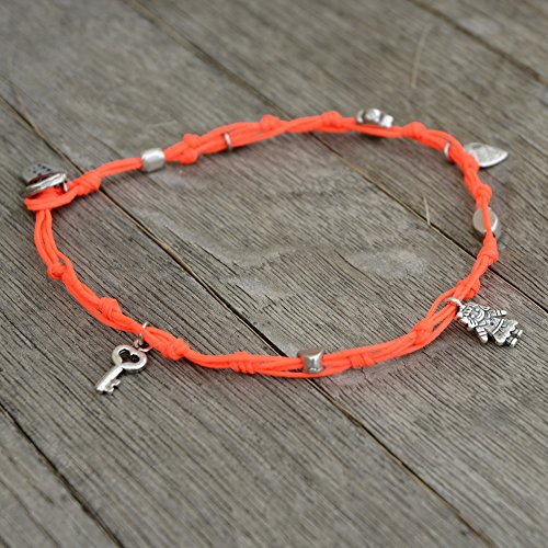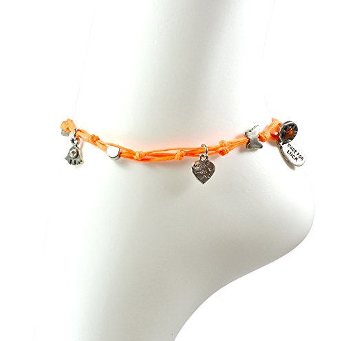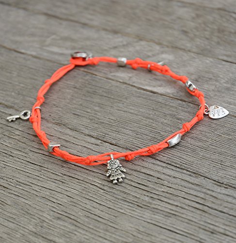 -. Feature : HANDMADE WAX COTTON ANKLET WITH CHARMS: The orange neon cotton cord ties anklet is made with the Hamsa Hand for protection, Girl Charm, Key to My Heart, locket and Made With Love heart - Very durable. / SINGLE STRAND ANKLET COMFORT FIT: The anklet is 11" (28 CM) in length with a button clasp closure for a comfortable fit. / QUALITY POLISHED SILVER PLATED CHARMS: The charms have a quality silver plating finish. / GIRLS HAVE MORE FUN CHARM ANKLET: This is a summer/beach anklet with all girls love charms - By MIZZE Jewelry. / 100% FULL MONEY BACK MIZZE GUARANTEE: MIZZE Made for Luck Jewelry stands behind our brand and provides a 100% full money back guarantee. If you are unhappy with your handmade anklet, for any reason, please contact us!