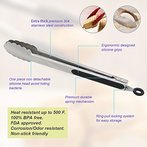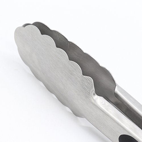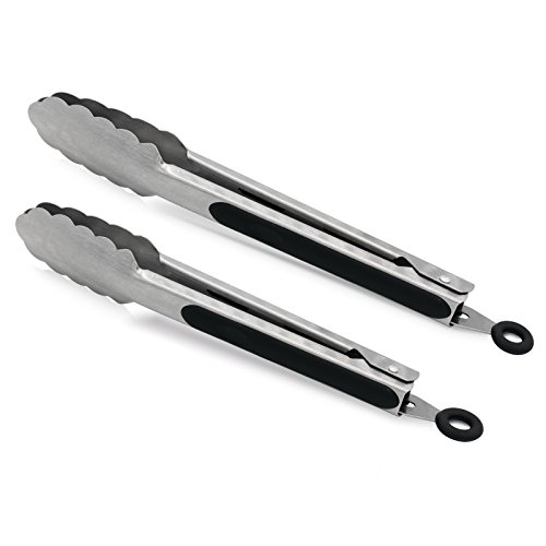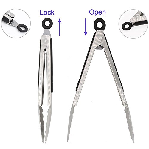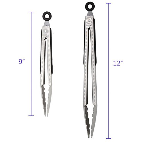 9-Inch & 12-Inch 304 Stainless Steel Kitchen Tongs, Set of 2 Sturdy Non-Stick Grilling Barbeque Cooking Stainless-steel Locking Food Tongs with Good Grip, Brushed Steel