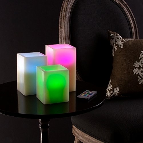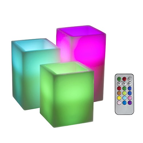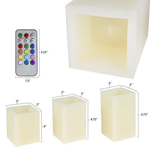 Lavish Home Square Color Changing Flameless Candle with Remote - 3 pc