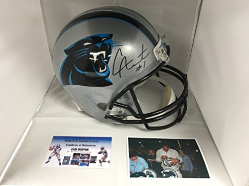 Cam Newton Signed Autographed Carolina Panthers Full Size Helmet GTSM Personal Player Hologram & COA W/Photo From Signing