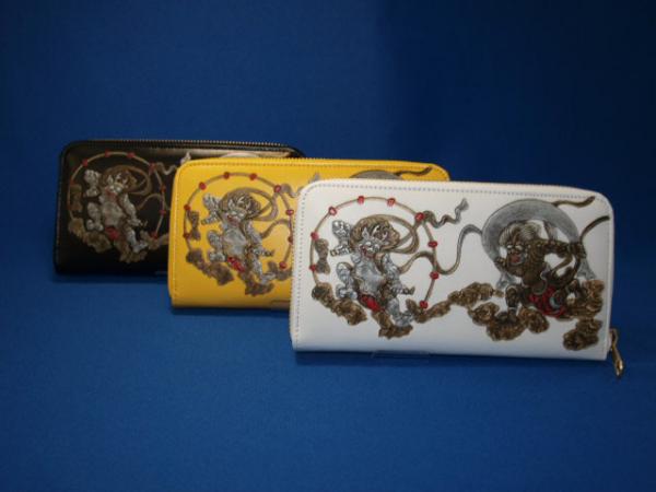 | 人気の「風神雷神」の絵柄浮き押し加工を施した高級牛革ラウンド型長財布です。高級牛革の上と下側に版をあてがい、熱と圧力を掛けて革に膨らみの癖を付け、徐々に冷まして革に凹凸を付けます。その上から色を付けていくという、大変熟練された技術の要る作業を、手間暇を惜しまず仕上げた、職人魂の逸品です。 |