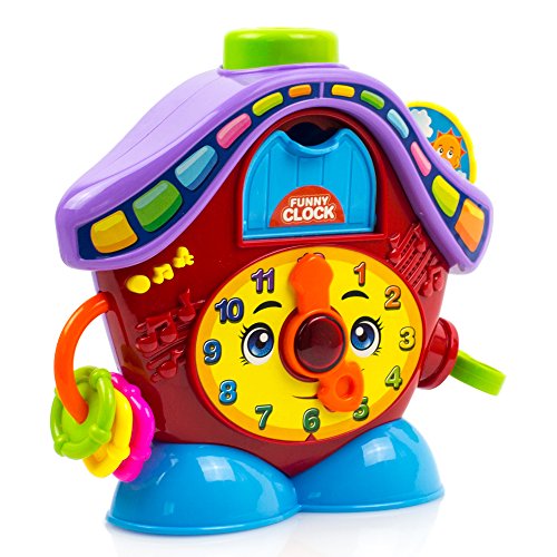.Kids will have fun learning to tell time with the toysery time clock. Our clock toy has an alarm clock for a head, a yellow dial, green minute and hour hands. In the learning mode, this kids clock toy teaches time in five-minute. Toysery clock teaches kids not only time, but also about numbers and counting. It helps kids to learn skills in both an entertaining and educational way. Made for kids aged 18 months above, this device will make the process fun and exciting. Children can learn the days of the week, months in the year and much more with this great clock toy play set