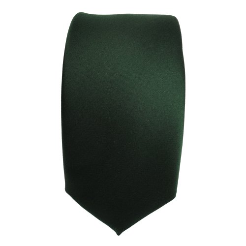 TigerTie Schmale Satin Krawatte grun dunkelgrun tannengrun uni - Binder Schlips Tie Polyester
