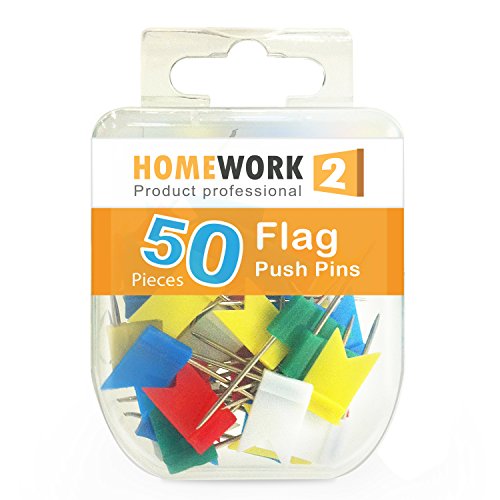 Homework2 Map Flag Push Pins Assorted 5 Colors, 50 Pieces per box, 35 mm