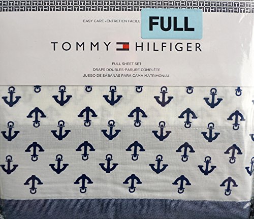 Tommy Hilfiger 4 Piece Full Sheet Set Navy Blue Anchors on White