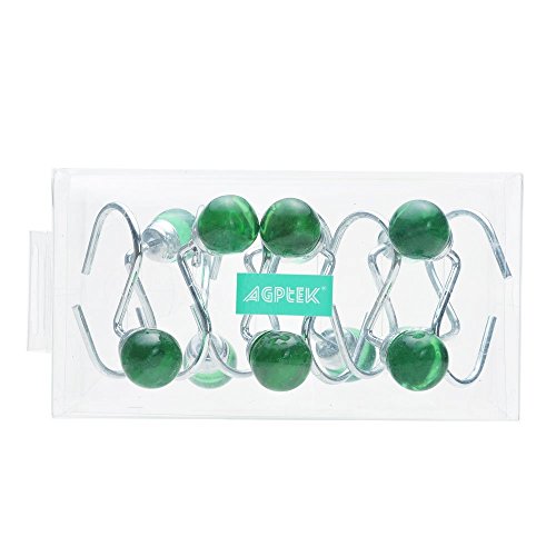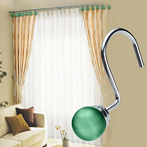 Rhinestone Shower Curtain Hooks, AGPtek 12 pcs Home Decorative Curtain Hooks Fashion Rustproof for Interior Decoration (Green)