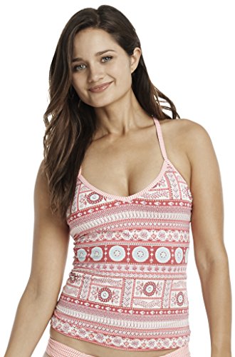 Based on our Catalina bikini, the long torso of the tankini gives coverage where needed. The athletic t-back style is recommended for high levels of activity.