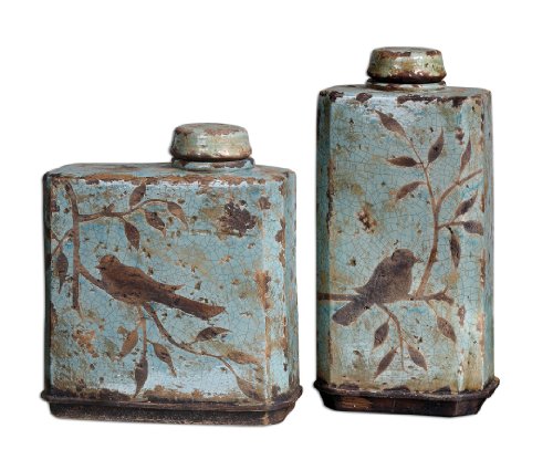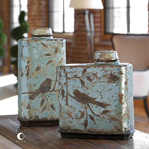 Uttermost Freya Containers 4.75 x 8 x 15.5" (Set of 2), Light Sky Blue