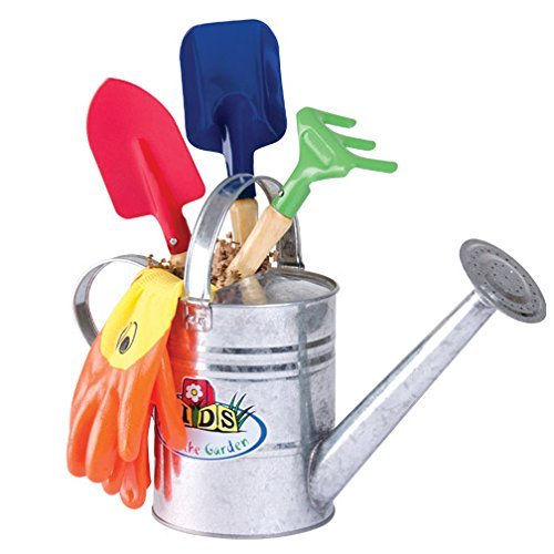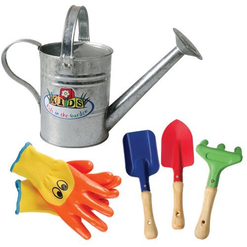 Studio : A.M. Leonard Publisher : A.M. Leonard Binding : Toy Product Description Little ones love to help in the garden and these pint-size garden implements let them do just that. Children will learn the fun of gardening while you build a lasting bond working together. Made with the same high quality components as adult-sized tools, this kit includes a 2 quart, traditional style, zince finished watering can with sprinkle-type head (KG96), a 3-piece hand tool set with sturdy wooden handles and metal heads (G3150), and to protect their little hands, a set of bright yellow ducky gloves with 3/4 dip nitrile coating (DGK). All wrapped in clear cellophane gift wrap. 0