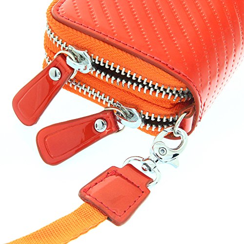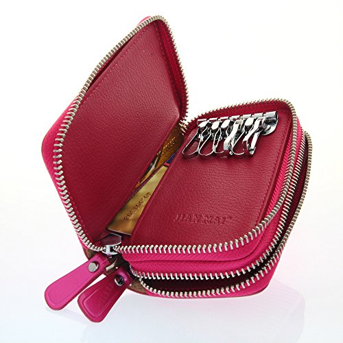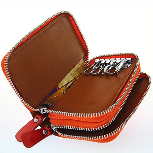-. Feature : Wristlet car key card wallet is made of genuine high quality cow leather and lining is Polyester. / Size: 4.92(L)*3.15(H)*1.58(W)inches /125(L)*80(H)*40(W)mm. Double zipper pocket safety, clutch wallet for easier carry in daily life / Structure: 1 zip Fold Cash/Coin Holder,2 Pockets for Tictets/Bill/Receipt/Cards,6 Key rings. Wrist strap design makes clutch into an essential and easy to carry. The wrist strap can be remove / Nice gifts of Valentine's Day, Mother's Day, Thanksgiving, New Year, and Birthday for girlfriend, mother, and wife. / Useful convenient, Small and lightweight, easy to carry with you! Holds the key holder for shopping or tea time with friends, Date and so on.
