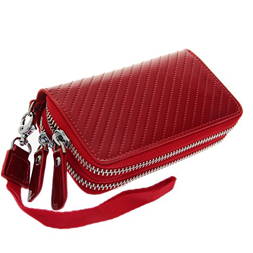 -. Title : Women's Genuine Leather Car Key Double Zip Around Case Wristlet Wallet Multi-purpose Clutch Purse Bag Organizer