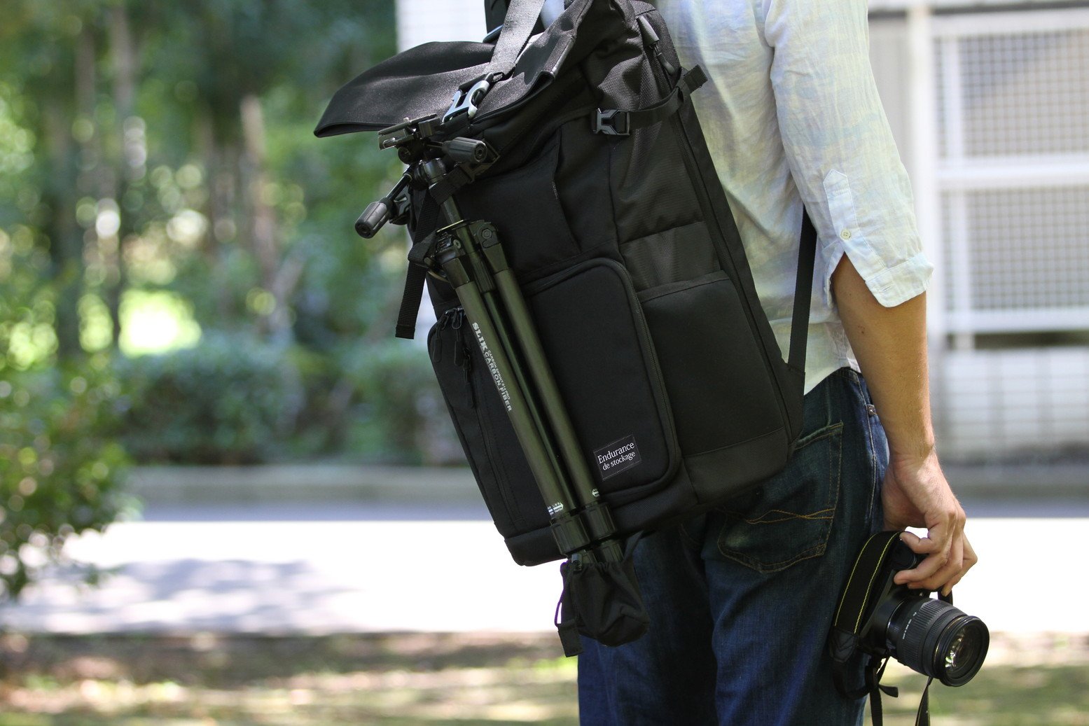 It is also possible to store a tripod, it is possible to store a tripod in the center of the bag, equipped with a pocket for a tripod pedal at the bottom of the bag front considering the balance when carrying it.