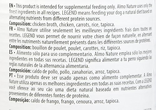 Almo nature Legend chicken fillet adult canned dog food is made Purely from the finest chicken with no added colorants, preservatives, supplements or bulking agents. The chicken is hormone-free and prepared using only the best cuts of meat with high biological value to ensure your pup is eating the healthiest meal possible. This yummy recipe also contains a small percentage of fiber-rich rice to help maintain intestinal flora, lysine and magnesium levels.Feature