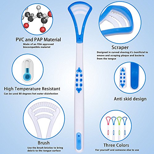 Tips: - Use before brushing your teeth. - For hygienic reasons replace every 2 months. - During the first few days of use the tongue cleanser may in some cases provoke a feeling of nausea. This feeling will disappear with time and you will be able to reach the back of the tongue without difficulty. - Keep out of reach of children. Package: 4 PCS Tongue Scraper