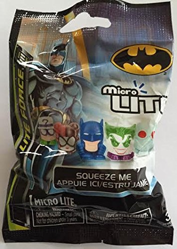 -. Binding : Toy -. Brand : DC Comics -. EAN : 0640843450015 -. Feature : Microlites light up with just a squeeze. / Figures have a loop on top to allow hanging from backpacks, lockers, or purses. / Bundle includes three randomly assorted, semi-blind packs, each containing one microlite. / Entire series is comprised of six different figures--collect them all! -. IsAdultProduct : 0 -. Label : Tech4Kids -. Manufacturer : Tech4Kids -. PackageQuantity : 3 -. ProductGroup : Toy -. ProductTypeName : TOYS_AND_GAMES -. Publisher : Tech4Kids -. Studio : Tech4Kids -. Title : Batman and Villains LED Micro Lites/Microlites Charm Light 3-Pack -. UPC : 640843450015