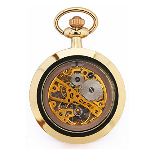 -. Title : AMPM24 Unisex Mechanical Pocket Watch Bronze Skeleton With Chain WPK244