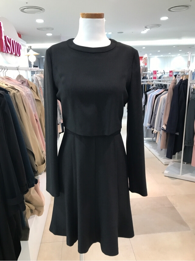 신충성이 좋은 펄리혼방소재의 플레어 원피스입니다