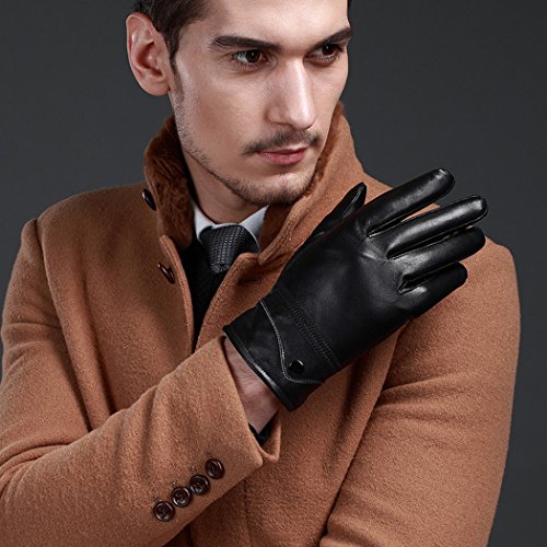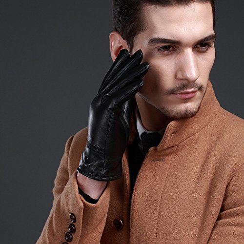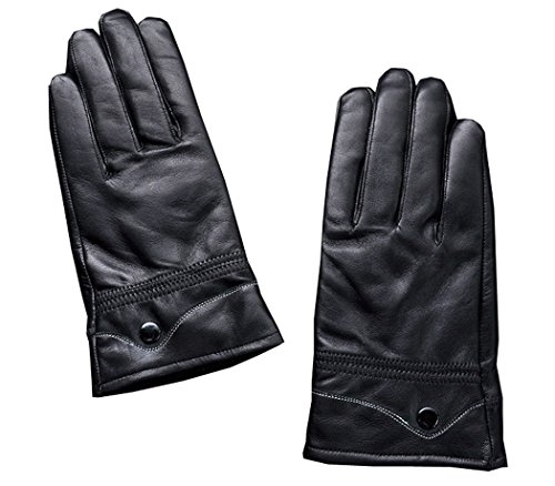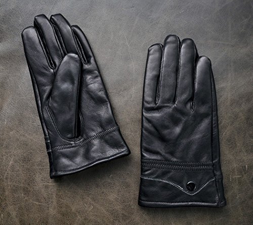 Note:Measure the hand you normally write with at its widest point,excluding the thumb. Our leather gloves are slim fit design. Gloves would be snug at first but leather will stretch. Made of real leather with warm and soft plush lining,offer a unique mix of practical design and directional style, keep your hand warm,and protect your hand when going outside in cold weather conditon.try this fashion warm gloves by HINY,enjoy your winter season. 0