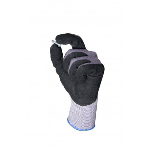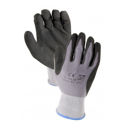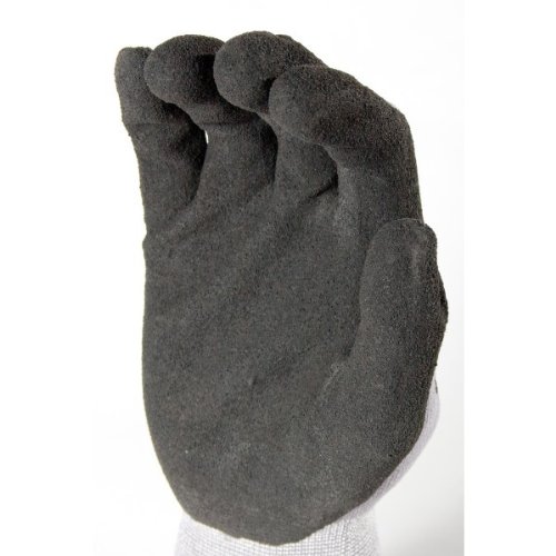 12 Pairs, Mirco-Foam Nitrile Coated Gloves- Premium Gray 15 Gauge Nylon/Lycra Black Mxflex Foam Palm Sandy Finish (Large)