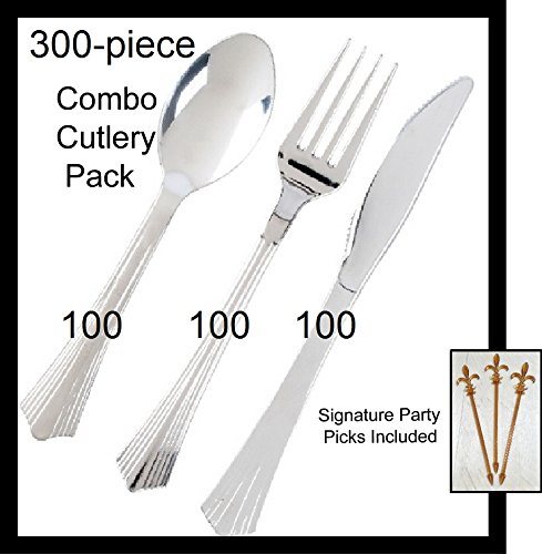 - 300-Piece Silver Plastic Cutlery Combo Pack