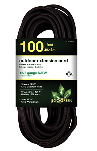 GoGreen Power GG-13700BK - 16/3 100' SJTW Outdoor Extension Cord - Black