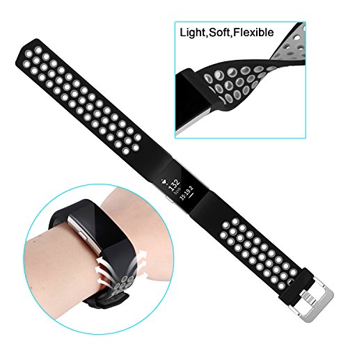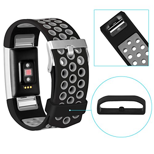 HIGH QUALITY SILICONE FITNESS WRISTBAND: Our Fitbit Charge 2 Band is made of flexible and durable soft silicone material , you can easy to install and remove the bands, no worry the color will rub off in few days.With stainless steel buckle design,you no need to worry the bands will pop off.