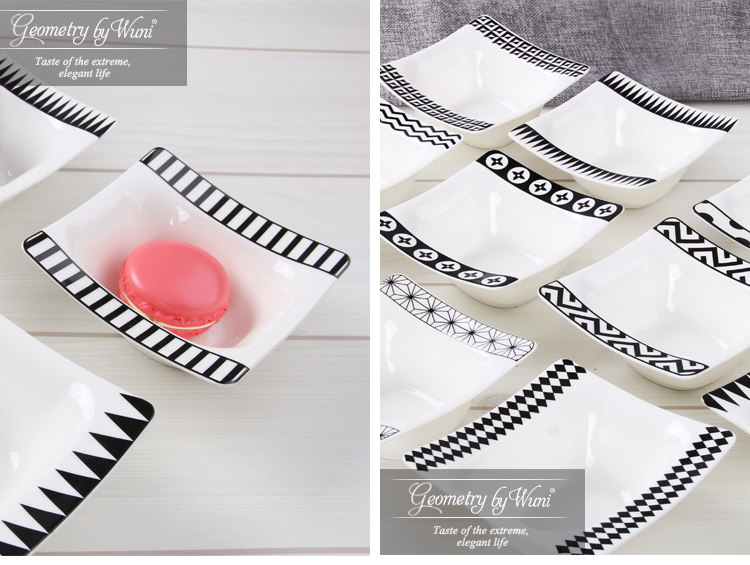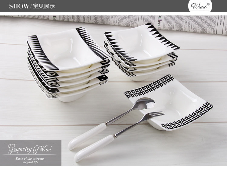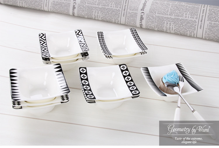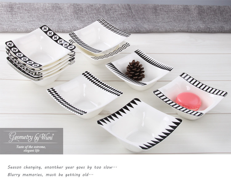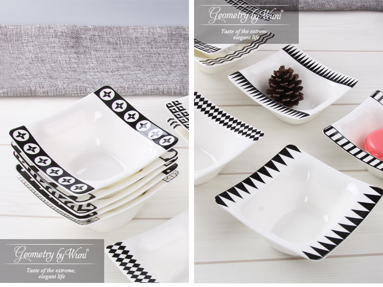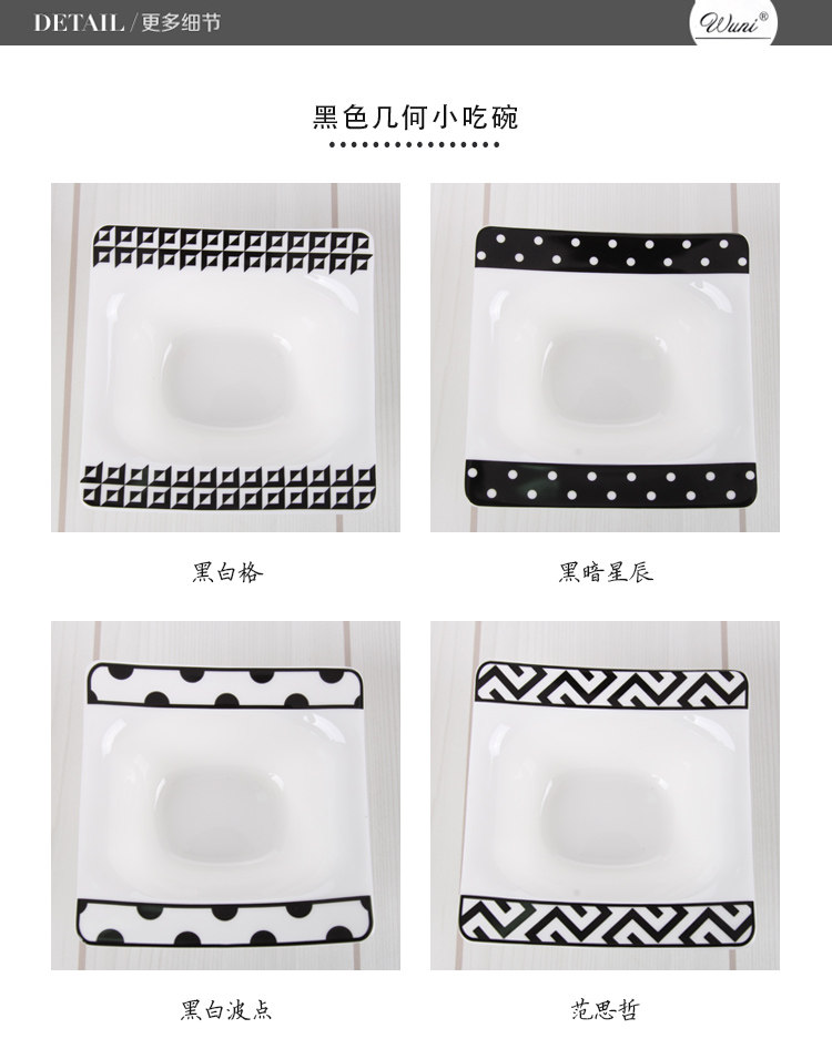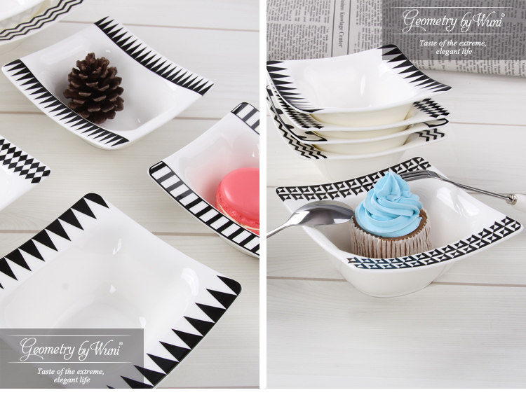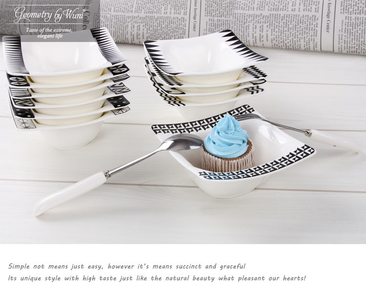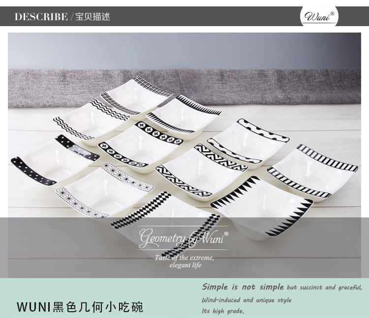 黑色几何暗黑料理西式创意骨瓷陶瓷色拉甜品点心双皮奶小吃碗
